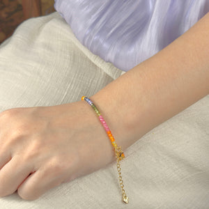 Liberte a sua força interior, sabedoria e elegância com a nossa Pulseira de Zircónias Arco-Íris. Feita com zircónia natural, uma das gemas mais antigas da Terra, ostenta uma variedade de cores e um brilho intenso, apenas superado pelos diamantes. Sinta-se confiante e empoderada, pois ajuda-a a alcançar objetivos e a ultrapassar obstáculos, promovendo a paz, a clareza e a intuição. Esta poderosa pedra preciosa também melhora os relacionamentos e o bem-estar geral.