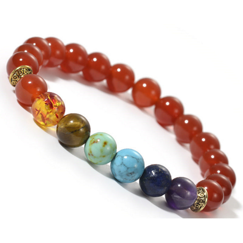 Pulseira de Ágata Vermelha com Sete Chakras