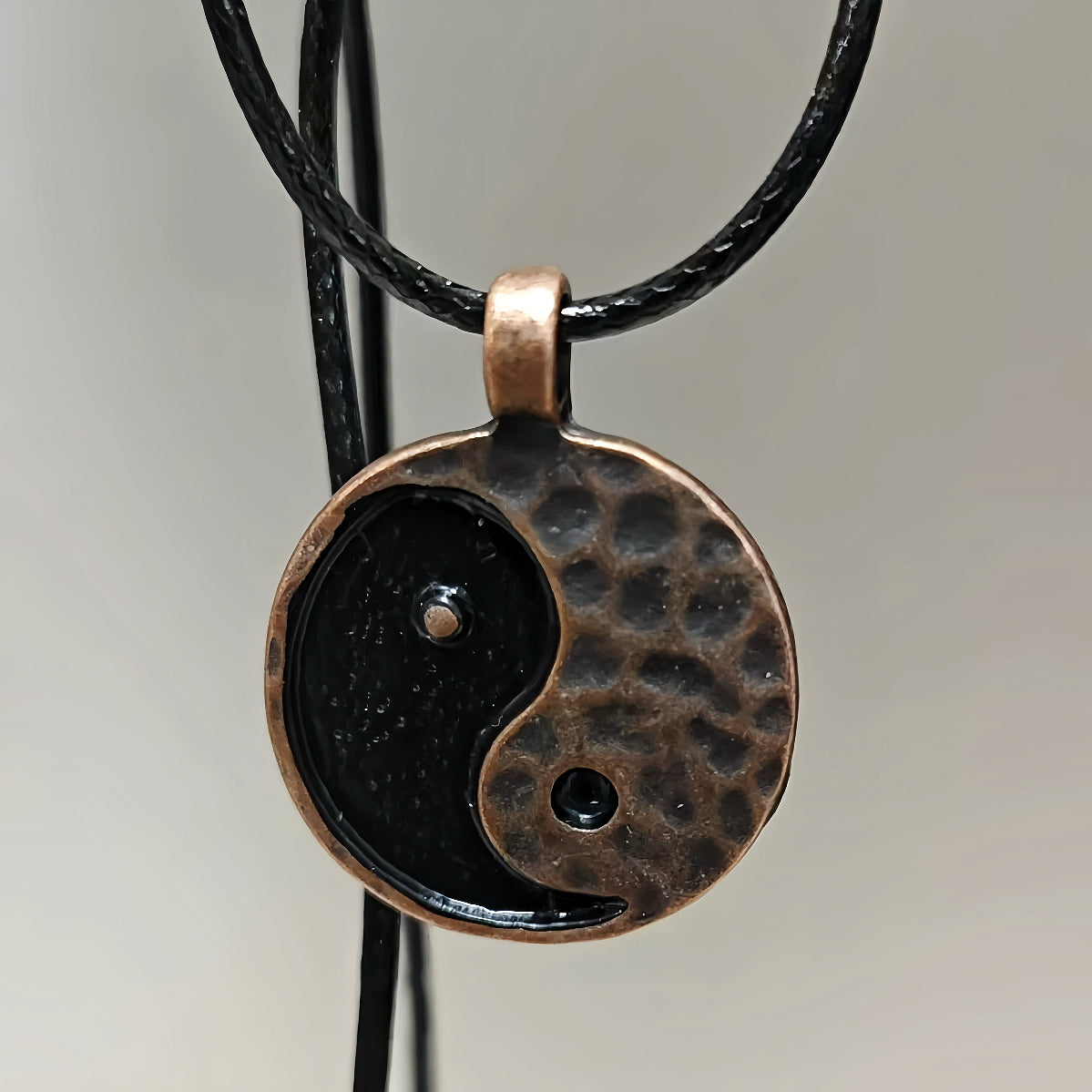 Abrace o ritmo fundamental do universo com este pendente forjado à mão Yin Yang. Com a sua textura robusta e martelada e o seu toque substancial, esta peça é mais do que um acessório — é uma âncora para a antiga filosofia do equilíbrio, um lembrete vestível da harmonia que rege toda a existência.