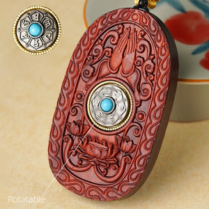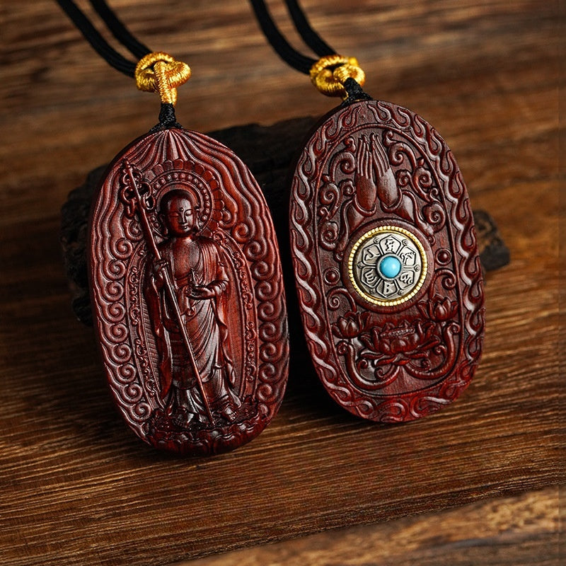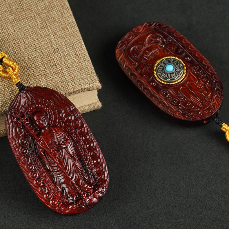 Each pendant is masterfully carved from a single, solid piece of precious Red Sandalwood (紫檀木, Zitan). Revered for centuries, this dense, fragrant wood is known for its deep, rich color and is the perfect medium for a sacred object intended to last a lifetime. The intricate details bring the serene and powerful presence of the Bodhisattva to life.