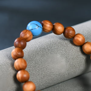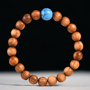 Combinando madeira de cipreste com infusão de sálvia e pedras de turquesa genuína, esta pulseira equilibra a proteção terrena com a energia positiva. A base de cipreste absorve naturalmente as emoções negativas, enquanto a turquesa – utilizada há muito tempo pelas culturas nativas – estimula a comunicação honesta. Uma companheira ideal para dias stressantes, ajudando-o a manter a compostura e a autenticidade.