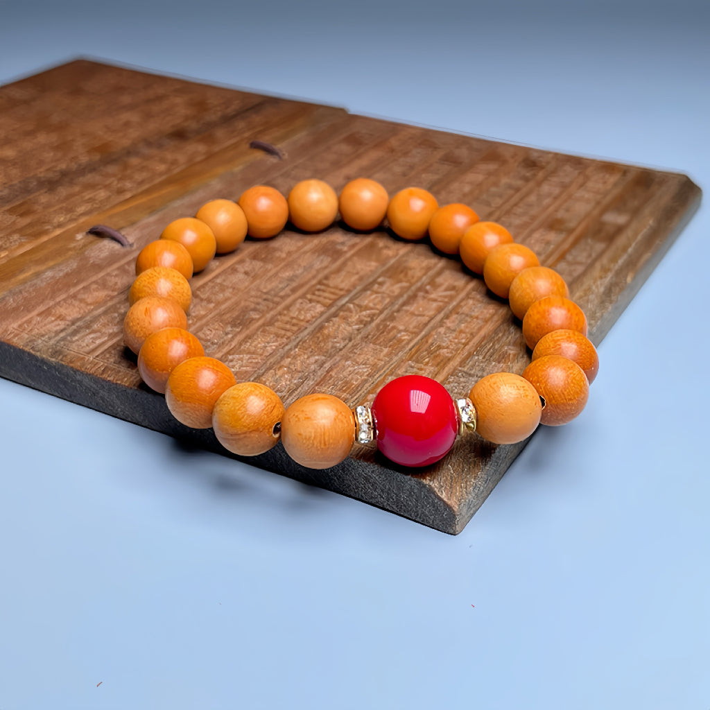 Incorpore a força silenciosa e a serenidade consciente com a Pulseira de Sândalo Vermilion Pulse, uma mistura harmoniosa de simplicidade natural e profundidade simbólica.