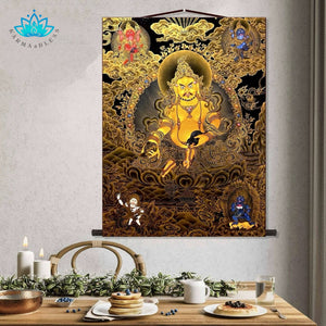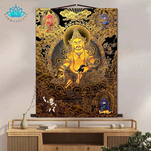 Yellow Jambhala Wall Scroll for Wealth and Abundance